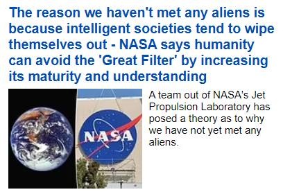 Σε ένα έγγραφο που εισάγει τη θεωρία του «Μεγάλου Φίλτρου», πέντε ερευνητές της NASA υποστηρίζουν ότι μπορεί να υπήρξαν πολιτισμοί στο σύμπαν, αλλά ίσως έχουν εξαφανιστεί πριν έρθουν σε επαφή μαζί μας.