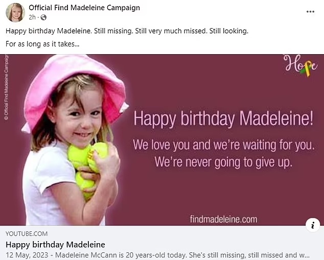 Οι γονείς της Μαντλίν ΜακΚάν δημοσίευσαν ένα συγκινητικό αφιέρωμα για τα 20ά γενέθλια της κόρης τους σήμερα - λέγοντάς της: «Σε αγαπάμε και σε περιμένουμε. Δεν πρόκειται ποτέ να τα παρατήσουμε».