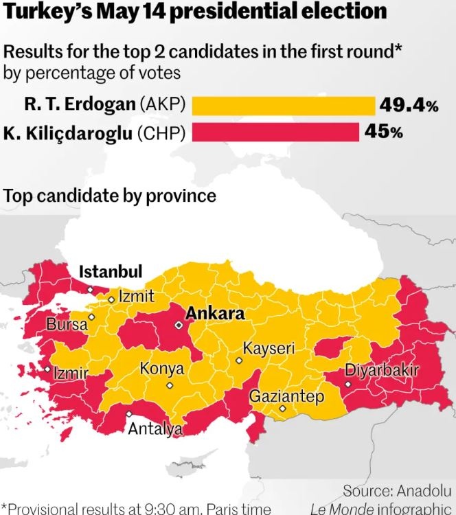 Η γαλλική εφημερίδα παρουσίαζε χάρτη τουρκικής προέλευσης, στον οποίο φαίνονταν ελληνικά νησιά... να ψηφίζουν Κιλιτσντάρογλου