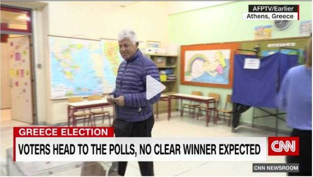 «Οι Έλληνες ψηφοφόροι κατευθύνονται στις κάλπες για τις κομβικές εκλογές, αλλά δεν υπάρχουν πιθανότητες για καθαρό νικητή», γράφει το αμερικανικό δίκτυο CNN.