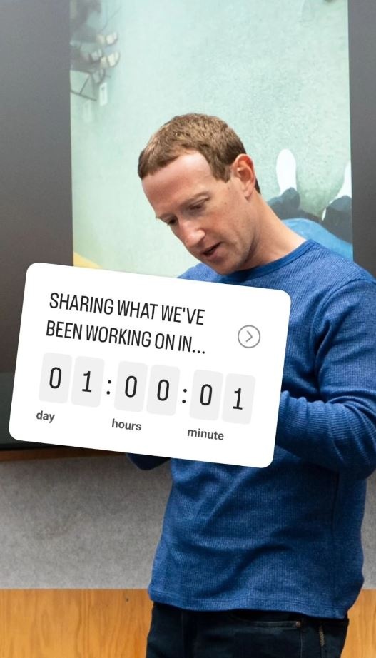 Τις επόμενες ώρες αναμένεται να αποκαλυφθεί τι ετοιμάζει το αφεντικό της Meta, που χειρίζεται Facebook, Instagram και μία σειρά από άλλες πλατφόρμες. Ο Μαρκ Ζούκερμπεργκ είχε προϊδεάσει για αυτό που έρχεται, ανεβάζοντας ένα στόρι στο Instagram με αντίστροφη μέτρηση και γράφοντας «κάτι ετοιμάζουμε».