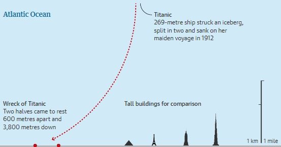 Ο «Τιτάνας» θα μπορούσε να βρίσκεται σε εξαιρετικά βαθιά νερά: το ναυάγιο του Τιτανικού, όπου κατευθυνόταν το υποβρύχιο με τους πέντε επιβάτες του, βρίσκεται στον βυθό της θάλασσας σε βάθος 3.800 μέτρων από τότε που το πλοίο χτύπησε ένα παγόβουνο και βυθίστηκε το 1912.
