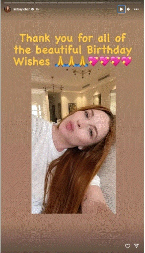Μοιράστηκε την ίδια selfie στο Instagram Story της, γράφοντας: «Σας ευχαριστώ για όλες τις όμορφες ευχές γενεθλίων» Ο μικρότερος αδερφός της Λίντσεϊ, Ντακότα Λόχαν, απέτισε επίσης φόρο τιμής στην αδερφή του για τα γενέθλιά της, με μια φωτογραφία τους που είναι και οι δύο ντυμένοι στα μαύρα στο σόου του Yves Saint Laurent για την Εβδομάδα Μόδας του Παρισιού το 2018.