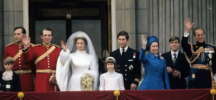 Όταν παντρεύτηκε το πρώτο από τα τέσσερα παιδιά της βασίλισσας Ελισάβετ και του πρίγκιπα Φίλιππου - η πριγκίπισσα Άννα, με τον Μαρκ Φίλιπς τον Νοέμβριο του 1973 φορώντας την ίδια γαμήλια τιάρα με τη μητέρα της - η μονάρχης φορούσε ένα βασιλικό μπλε σύνολο. Η Άννα και ο Μαρκ, που έφεραν στον κόσμο δύο παιδιά, τον Peter και την Zara χώρισαν επίσημα 19 χρόνια αργότερα.