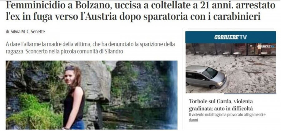 Μια 21χρονη έπεσε θύμα δολοφονίας στο Silandro, στην επαρχία Μπολζάνο της Ιταλίας, σε μια υπόθεση γυναικοκτονίας που προκαλεί οργή: Το σώμα της, γεμάτο από μαχαιριές, εντοπίστηκε στο σπίτι του πρώην συντρόφου της, ο οποίος συνελήφθη αργότερα από τους Carabinieri.