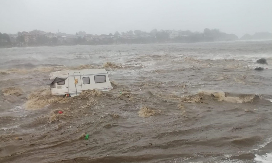Στα πλάνα που μεταδόθηκαν φαίνονται τροχόσπιτα και αυτοκίνητα να έχουν πέσει στη θάλασσα, αφού παρασύρθηκαν από τα νερά ποταμών που υπερχείλισαν. Έχουν πλημμυρίσει επίσης μπάνγκαλοου και ξενοδοχεία κατά μήκος των ακτών της Μαύρης Θάλασσας.