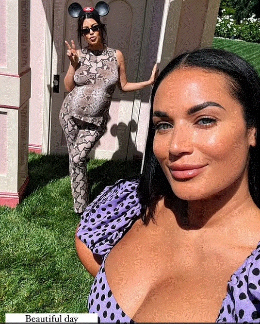 H 44χρονη Κόρτνεϊ Καρντάσιαν πόζαρε με μια στενή στολή πύθωνα και αυτιά Μίκυ Μάους καθώς γιορτάζει μαζί με τις αδερφές της Kιμ και Κλόι στο baby shower για το μωράκι της που θα έρθει σύντομα στον κόσμο.