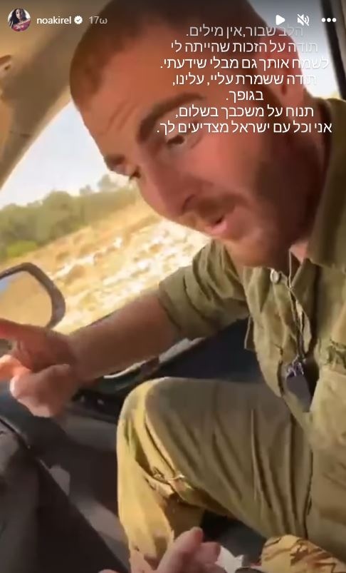 «Γεια σου Νόα, χθες το βράδυ ο διοικητής μου Ταγματάρχης Avi Hovlashovili έπεσε στον πόλεμο σαν αληθινός ήρωας και πολεμιστής. Ήθελα να σου πω ότι του άρεσαν πολύ τα τραγούδια σου, σε κάθε βόλτα με το αυτοκίνητο ήταν σίγουρο ότι θα υπήρχε μια λίστα αναπαραγωγής σου. Πάντα αστειευόμασταν, "τι θα γίνει τη μέρα που θα τη γνωρίσεις; Τι θα της πεις;" Δυστυχώς, δεν πρόλαβες να γνωρίσεις τον τρελό πολεμιστή που αγαπούσε τη Νόα».