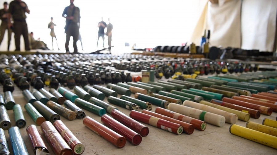 Νάρκες, οβίδες, ρουκέτες, χειροβομβίδες. Αυτά είναι τα όπλα που συνέλεξε η ομάδα εξουδετέρωσης του ισραηλινού στρατού «καθαρίζοντας» τις περιοχές στις οποίες εισέβαλε η Χαμάς γύρω από τη λωρίδα της Γάζας.