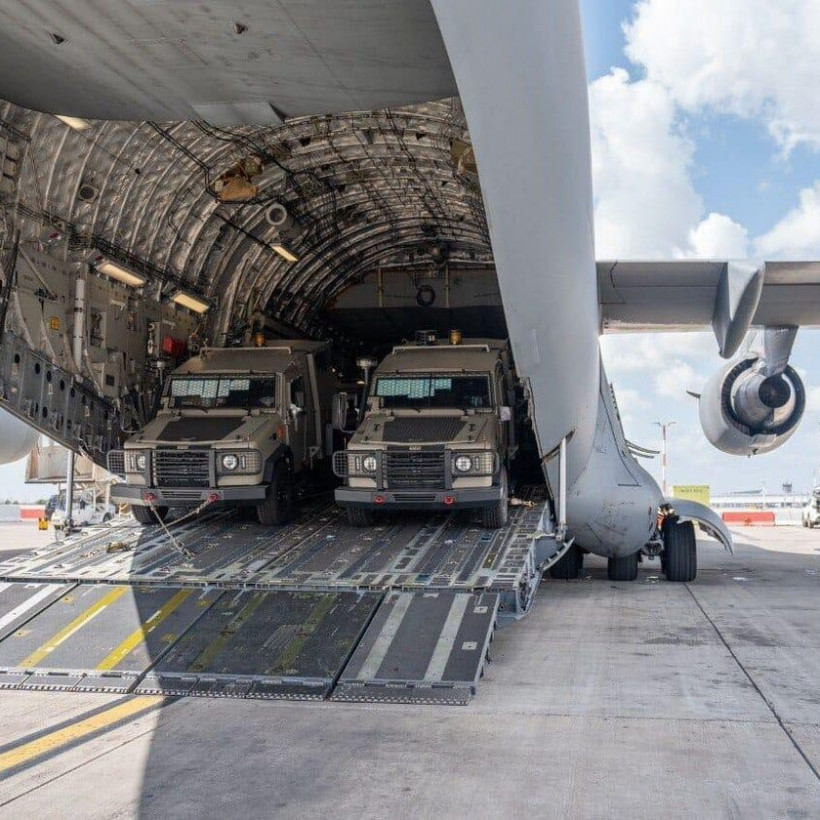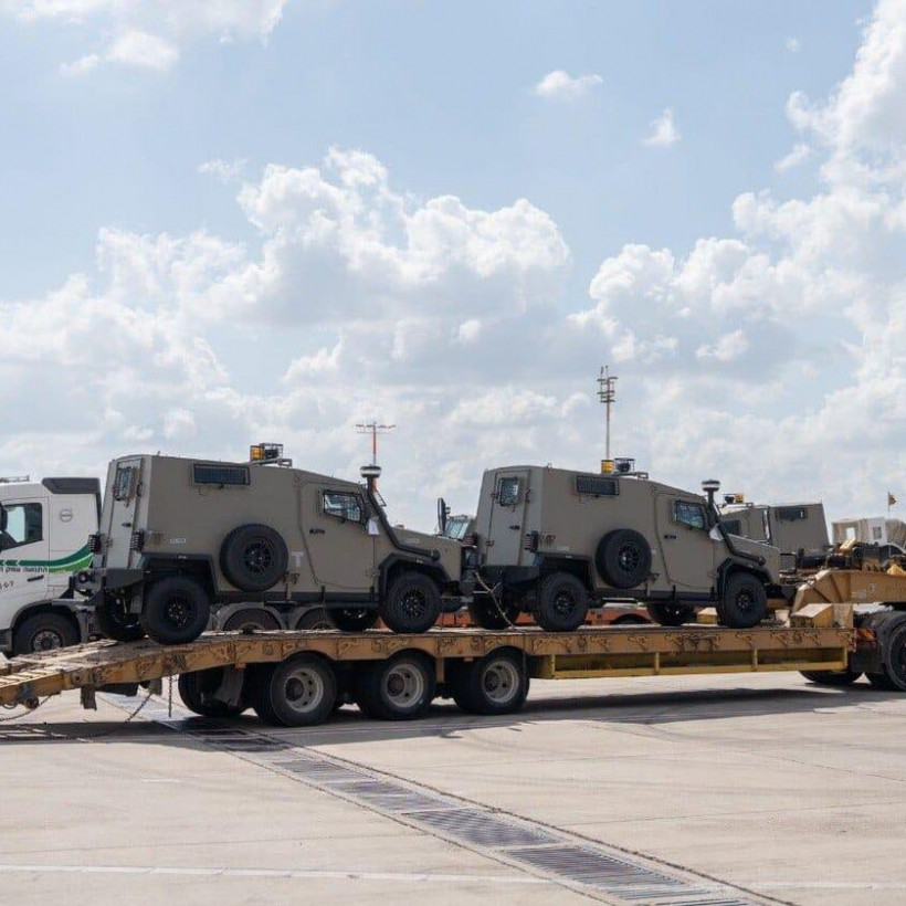 Το Υπουργείο Άμυνας του Ισραήλ παρέλαβε ένα φορτηγό αεροπλάνο από τις Ηνωμένες Πολιτείες, το οποίο μετέφερε την πρώτη αποστολή τεθωρακισμένων οχημάτων που προορίζονται για χρήση από τις Ισραηλινές Αμυντικές Δυνάμεις (IDF).