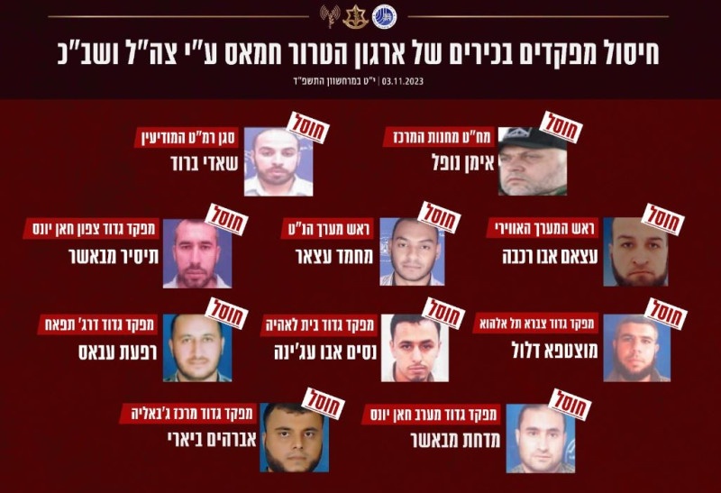 Τις φωτογραφίες και τα ονόματα των 10 ηγετικών στελεχών - διοικητών της Χαμάς που έχουν «εξουδετερωθεί» κατά των στρατιωτικών επιχειρήσεων στη Γάζα, έδωσε στη δημοσιότητα ο IDF.