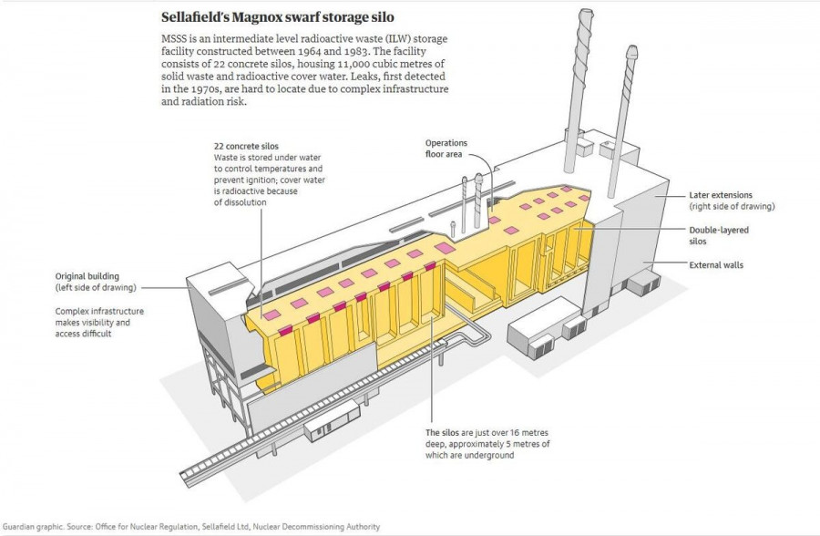 Η διαρροή ραδιενεργού υγρού από έναν από τους «υψηλότερους πυρηνικούς κινδύνους στο Ηνωμένο Βασίλειο» – ένα κτήριο σε αποσύνθεση στην τεράστια τοποθεσία της Κάμπρια γνωστή ως Magnox Swarf storage Silo (MSSS) – είναι πιθανό να συνεχιστεί έως το 2050, αναφέρει ο Guardian. Αυτό θα μπορούσε να έχει «δυνητικά σημαντική συνέπειες» εάν αυτό επιταχυνθεί, κινδυνεύοντας να μολυνθούν τα υπόγεια ύδατα, σύμφωνα με επίσημο έγγραφο.