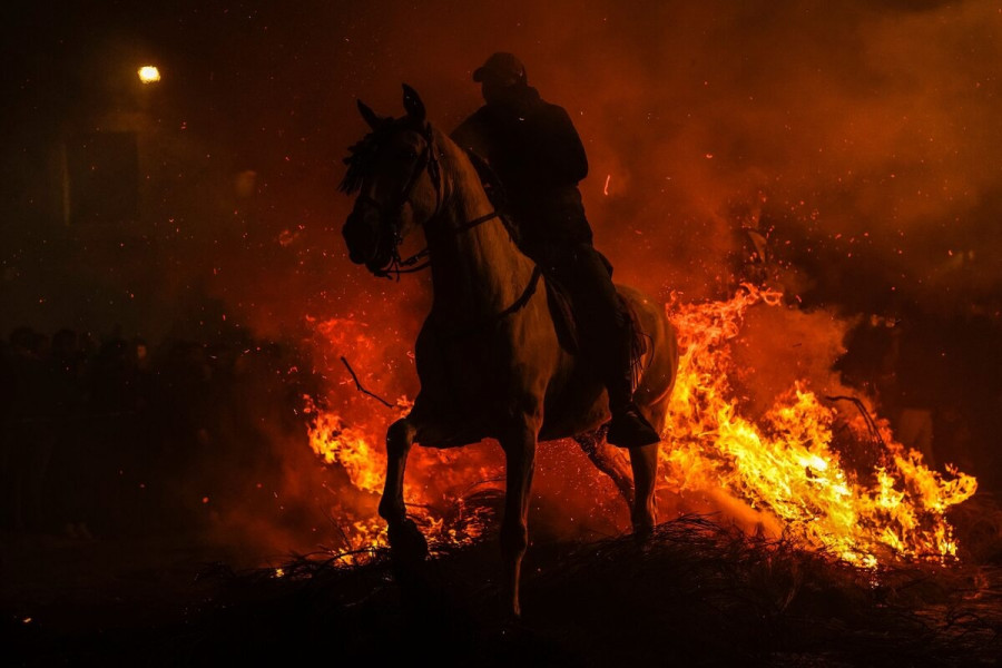 Ισπανία: Άλογα πηδούν στις φλόγες - Αναβίωσε το αμφιλεγόμενο έθιμο για τη γιορτή του Αγίου Αντωνίου