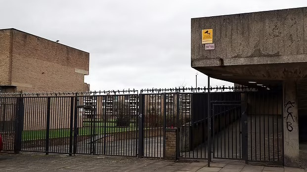 Το εν λόγω συγκρότημα διαμερισμάτων περιτριγυρίζεται από μεγάλες μεταλλικές πύλες και αιχμηρά κάγκελα με τους γείτονες να το συγκρίνουν με φυλακή. Τα σκουπίδια είναι σκορπισμένα στους κοινόχρηστους χώρους και αρκετά παράθυρα και πόρτες φέρουν πινακίδες που προειδοποιούν για κάμερες κλειστού κυκλώματος.