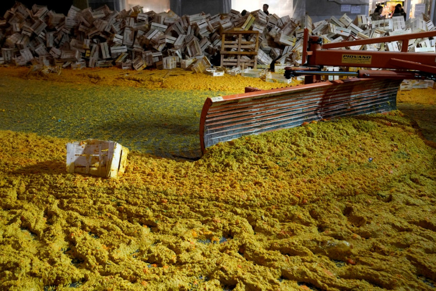 Τόνοι πορτοκαλιών πετάχτηκαν και φέτος στην Ιβρέα της Ιταλίας, σε μια προσπάθεια να αναπαρασταθεί η περίφημη μάχη των πορτοκαλιών.