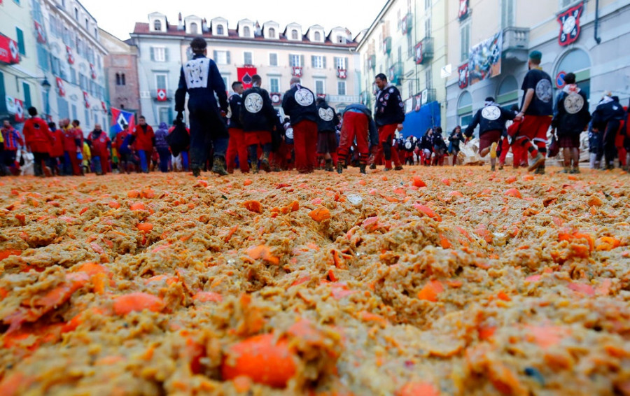 Το Καρναβάλι της Ivrea είναι ένα φεστιβάλ στη βόρεια ιταλική πόλη, το οποίο περιλαμβάνει μια παράδοση ρίψης πορτοκαλιών μεταξύ οργανωμένων ομάδων, γνωστή ως «Μάχη των Πορτοκαλιών». Είναι ο μεγαλύτερος αγώνας τροφίμων στην Ιταλία και τις γύρω χώρες.
