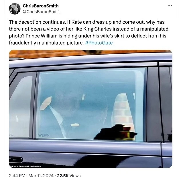 Μεταξύ άλλων στα social media έγιναν αναρτήσεις όπως: «Η εξαπάτηση συνεχίζεται. Αφού η Κέιτ μπορεί να ντύνεται και να βγαίνει, γιατί δεν έχει υπάρξει ένα βίντεο που να την δείχνει σαν τον βασιλιά Κάρολο αντί για μια παραποιημένη φωτογραφία;