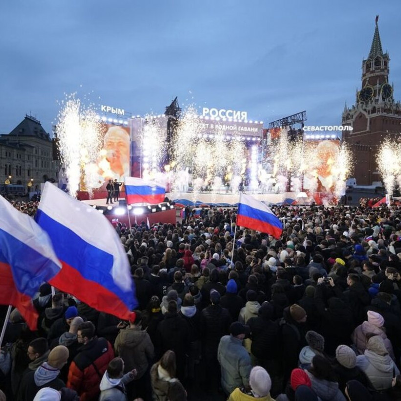 Ο Βλαντίμιρ Πούτιν απευθύνθηκε στο πλήθος που είχε συγκεντρωθεί στην Κόκκινη Πλατεία της Μόσχας για να παρακολουθήσει πατριωτική συναυλία εορτασμού της 10ης επετείου της προσάρτησης της Κριμαίας.