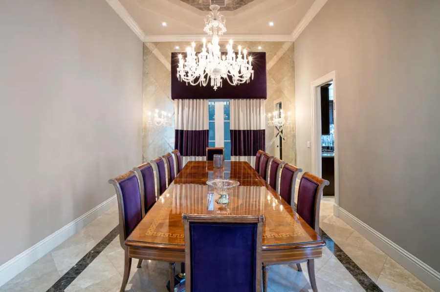 Η έπαυλη διαθέτει πέντε υπνοδωμάτια, επτά μπάνια, αγοράστηκε από τον μουσικό παραγωγό το 2015 έναντι 3,84 εκατομμύρια δολάρια ΗΠΑ. Ο DJ Khaled αργότερα δαπάνησε επιπλέον 2,5 εκατομμύρια δολάρια σε ανακαινίσεις, συμπεριλαμβανομένης της ντουλάπας με αθλητικά παπούτσια, του κινηματογράφου, της κύριας κρεβατοκάμαρας και πολλών άλλων χώρων. Άλλα βασικά χαρακτηριστικά είναι τρεις πολυέλαιοι χρυσού 14 καρατίων με κρύσταλλα Swarovski, μια πισίνα, ένα άλσος μπαμπού και αποβάθρα για σκάφος.