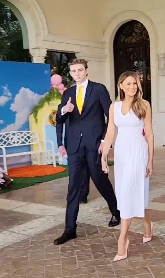 Ο 18χρονος Μπάρον και η 53χρονη μητέρα του απουσίαζαν κατά κύριο λόγο από την προεκλογική εκστρατεία του πρώην προέδρου, εμφανίστηκαν ωστόσο μαζί στο κτήμα του στο Παλμ Μπιτς, στη Φλόριντα για να περάσουν όλοι μαζί την εορταστική ημέρα.