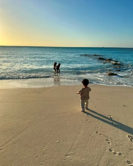 «Ανέβασε» επίσης ένα αξιολάτρευτο βίντεο του γιου της Τέιτουμ, να κατευθύνεται στο νερό για να κυνηγήσει την αδερφή του και ένα από τα ξαδέρφια του.