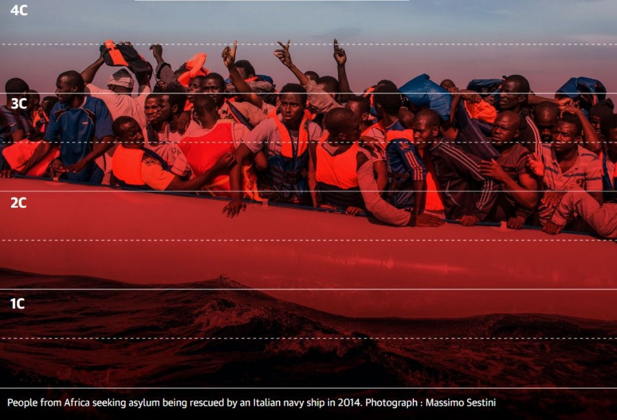 Στους 2,7 βαθμούς Κελσίου, δύο δισεκατομμύρια άνθρωποι θα απωθηθούν πέρα από το «κλιματικό όριο» της ανθρωπότητας,δηλαδή θα βιώνει πολύ πιο δυσχερής συνθήκες.