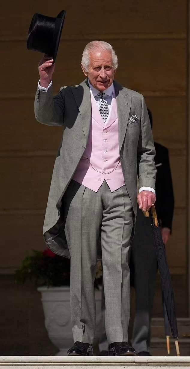 Ο βασιλιάς ευδιάθετος και χαμογελαστός έδειχνε κομψός μέσα σε ένα γκρι κοστούμι, με ένα ροζ μεταξωτό γιλέκο, γραβάτα με σχέδια και μαύρα παπούτσια, στα 75 του χρόνια και ενώ υποβάλλεται σε θεραπεία γαι τον καρκίνο. Την εμφάνισή του ολοκλήρωνε ένα μαύρο ημίψηλο καπέλο και μία ομπρέλα, καθώς ο βρετανικός καιρός είναι πάντα απρόβλεπτος.