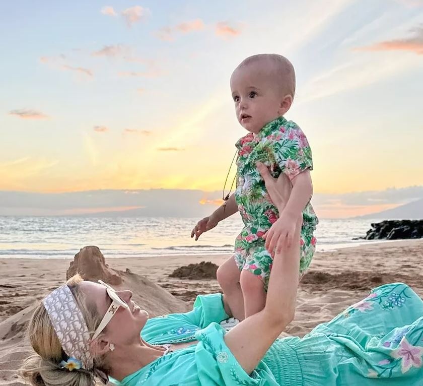 Μία άλλη φωτογραφία περιελάμβανε μια γλυκιά στιγμή μεταξύ μητέρας και γιου, με τη Χίλτον ξαπλωμένη στην παραλία και κρατώντας τον Φοίνιξ στον αέρα. Η Χίλτον μοιράστηκε επίσης μια χαριτωμένη φωτογραφία μαζί με τον αδερφό της Μπάρον, τη σύζυγό του Tέσα και τα δύο μεγαλύτερα παιδιά τους, την κόρη τους Μιλού Αλιζέ 4 ετών, και τον γιο τους Κάσπιαρ Μπάρον 20 μηνών.