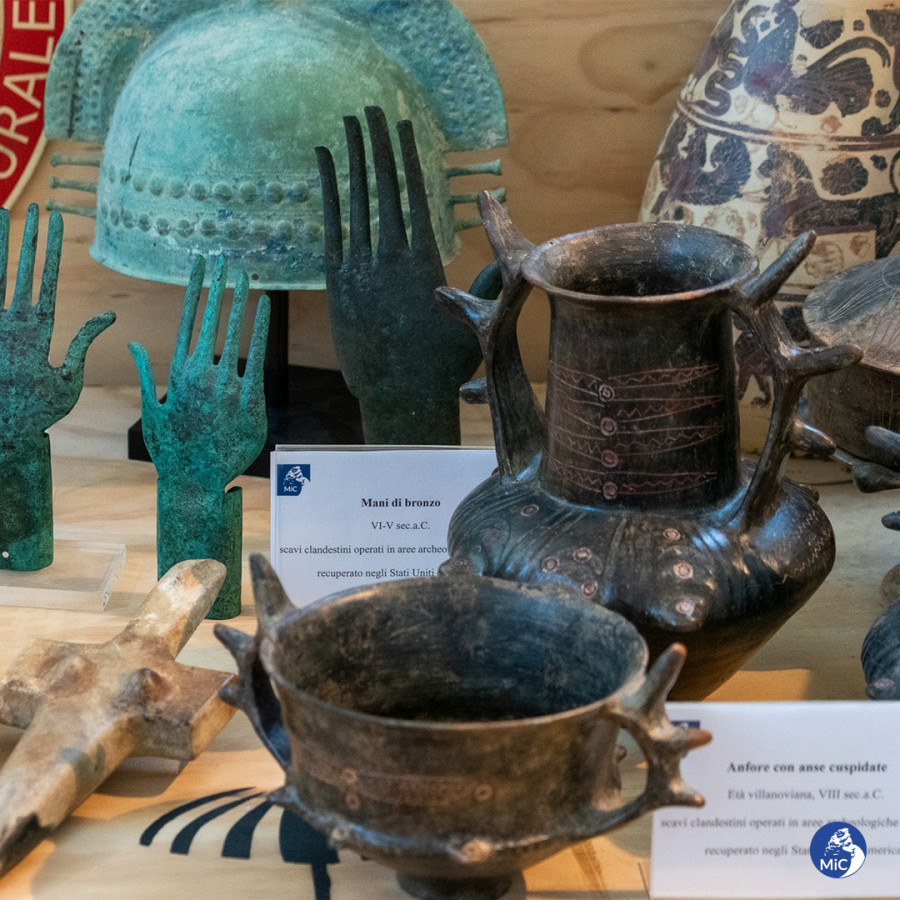 Χάλκινο άγαλμα πολεμιστή από την Ούμπρια που είχε κλαπεί από ένα ιταλικό Μουσείο το 1962 βρέθηκε σε γνωστό αμερικανικό Μουσείο και μωσαϊκό δάπεδο που απεικονίζει τον μύθο του Ορφέα που μαγεύει τα άγρια ζώα με τον ήχο της λύρας από τα μέσα του 3ου έως τα μέσα του 4ου αιώνα μ.Χ. που είχε κλαπεί από λαθραία ανασκαφή στη Σικελία στις αρχές της δεκαετίας του 1990 κατασχέθηκε από ιδιωτική συλλογή Νεοϋορκέζου συλλέκτη.