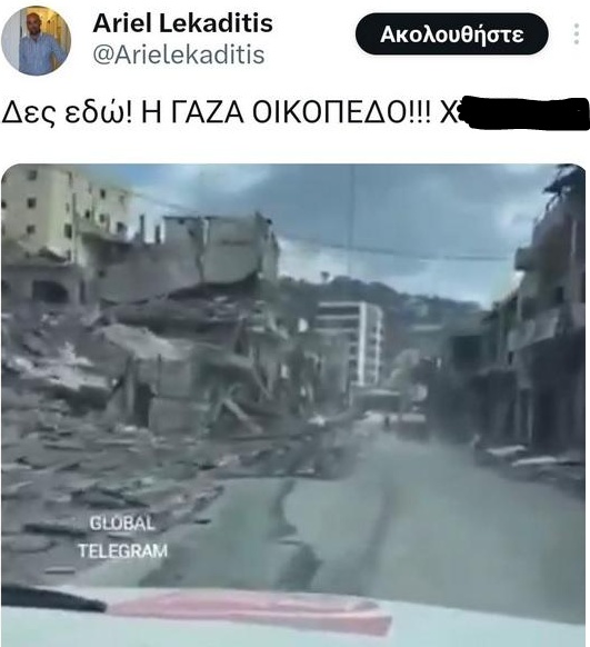 Θύελλα αντιδράσεων προκάλεσε το χυδαίο σχόλιο που έκανε σε ανάρτησή του στο Χ ο συγγραφέας Αριέλ Λεκαδίτης, με αφορμή την καταστροφή και την αιματοχυσία στη Λωρίδα της Γάζας.