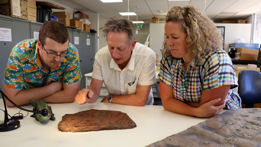 Ο John Long μελετά απολιθώματα από την περιοχή Mansfield της Αυστραλίας — όπου εντοπίστηκε η πλάκα — από τη δεκαετία του ’80. Η περιοχή έχει ήδη αποδώσει εντυπωσιακά ευρήματα, όπως αρχαία ψάρια και καρχαρίες, αλλά τα ίχνη τετράποδων ήταν το «ιερό δισκοπότηρο» των ερευνητών.
