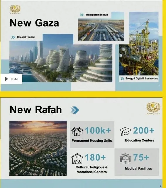 Το σχέδιο φιλοδοξεί να μετατρέψει τη Γάζα από μια ισοπεδωμένη εμπόλεμη ζώνη σε έναν περιφερειακό οικονομικό κόμβο έως το 2035