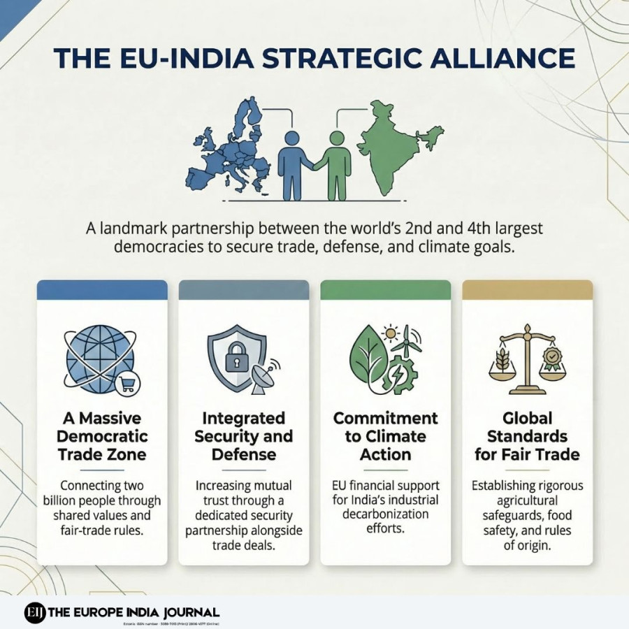 Για την Ινδία, σημαίνει βαθύτερη πρόσβαση σε μία από τις μεγαλύτερες αγορές παγκοσμίως. Για την Ευρώπη, ενισχύει τους δεσμούς με έναν δυναμικό και ανερχόμενο εταίρο. Και για τους δύο, αποτελεί ευκαιρία επαναβεβαίωσης της προσήλωσης σε ένα ανοιχτό, κανόνων-βασισμένο σύστημα εμπορίου.