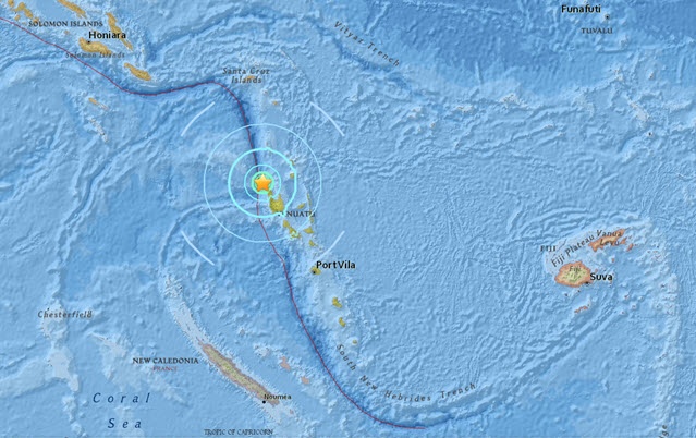 Το επίκεντρο του σεισμού εντοπίζεται 406χλμ. βορειοδυτικά της πρωτεύουσας Πορτ Βίλα και 85χλμ. βορειοδυτικα του Πορτ Ολρί.