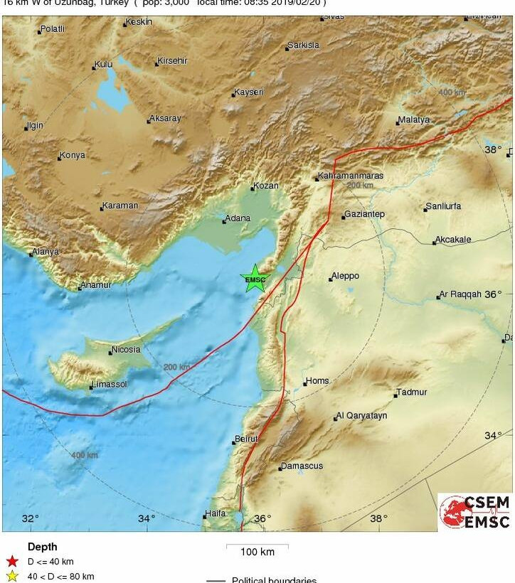 Σεισμική δόνηση μεγέθους 4,1 βαθμών της κλίμακας Ρίχτερ καταγράφηκε στην Τουρκία στις 08:35 (τοπική ώρα) σήμερα 20 Φεβρουαρίου.