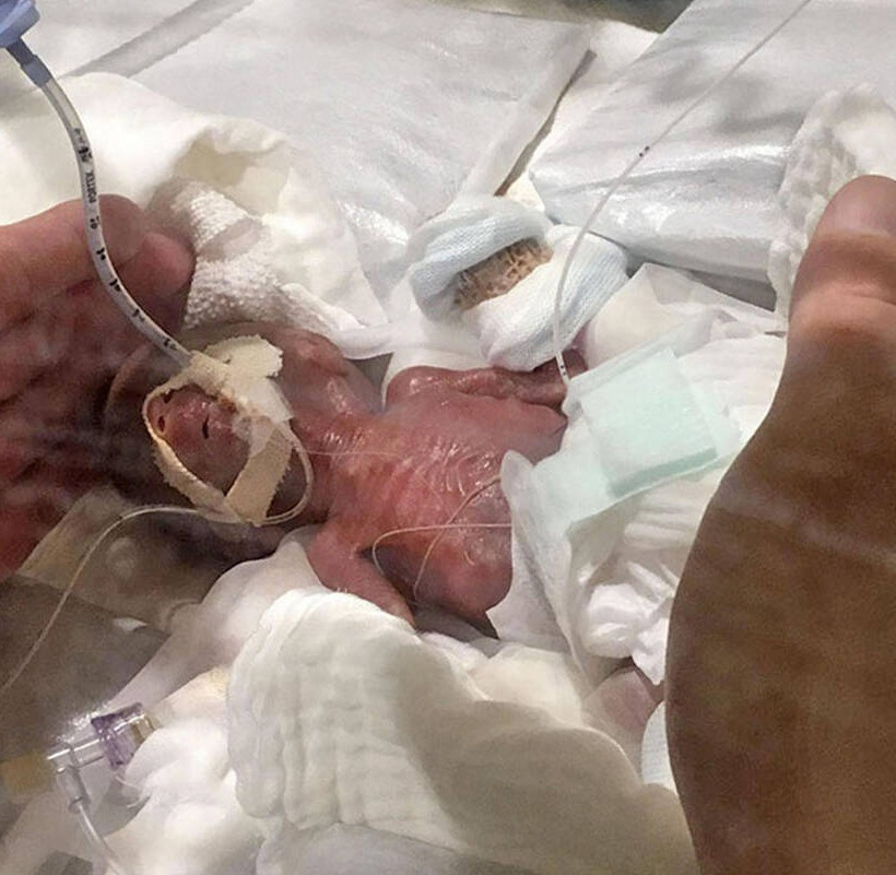 Το βρέφος ήταν τόσο μικρό όταν γεννήθηκε ώστε χωρούσε στις παλάμες ενός ενήλικα. Στη συνέχεια εισήχθη στην μονάδα εντατικής θεραπείας νεογνών του νοσοκομείου και οι γιατροί κατάφεραν να ρυθμίσουν την σίτισή του και τα αναπνευστικά του προβλήματα. Έτσι άρχισε να αναπτύσσεται σταθερά και κατάφερε να θηλάσει, κατι το οποίο φάνταζε ακατόρθωτο τον Αύγουστο, όταν ήρθε πρόωρα στη ζωή.