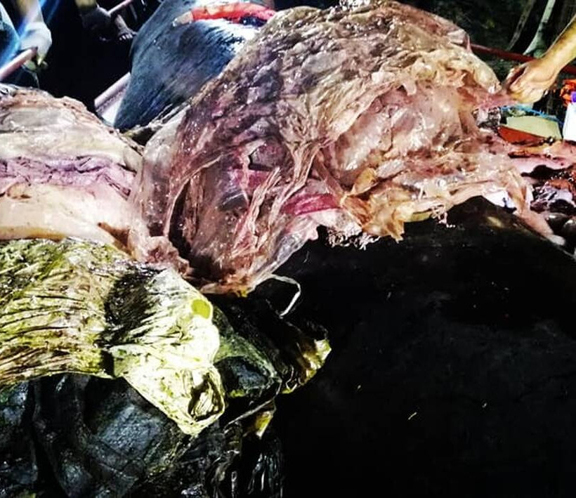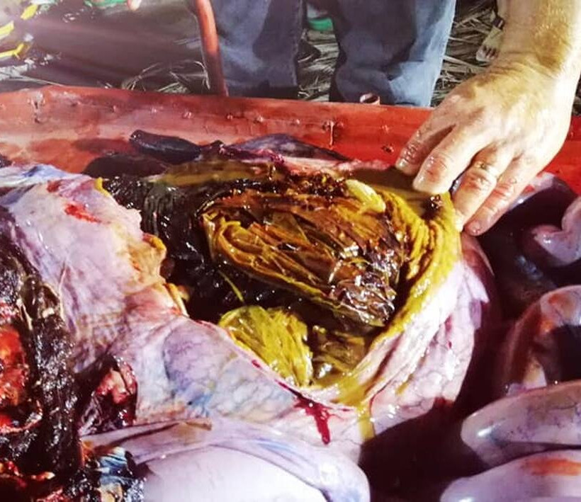 Οι φωτογραφίες που αναρτήθηκαν είναι πολύ «σκληρές» και δείχνουν το στομάχι της φάλαινας που πέθανε μετά από την άσχημη γνωριμία της με την ανθρώπινη φύση.