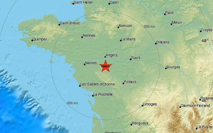 Η δόνηση σημειώθηκε 35 χλμ νότια της πόλης Angers.