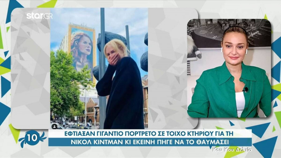 To γιγάντιο πορτρέτο σε τοίχο κτηρίου της Nicole Kidman που πήγε να θαυμάσει!