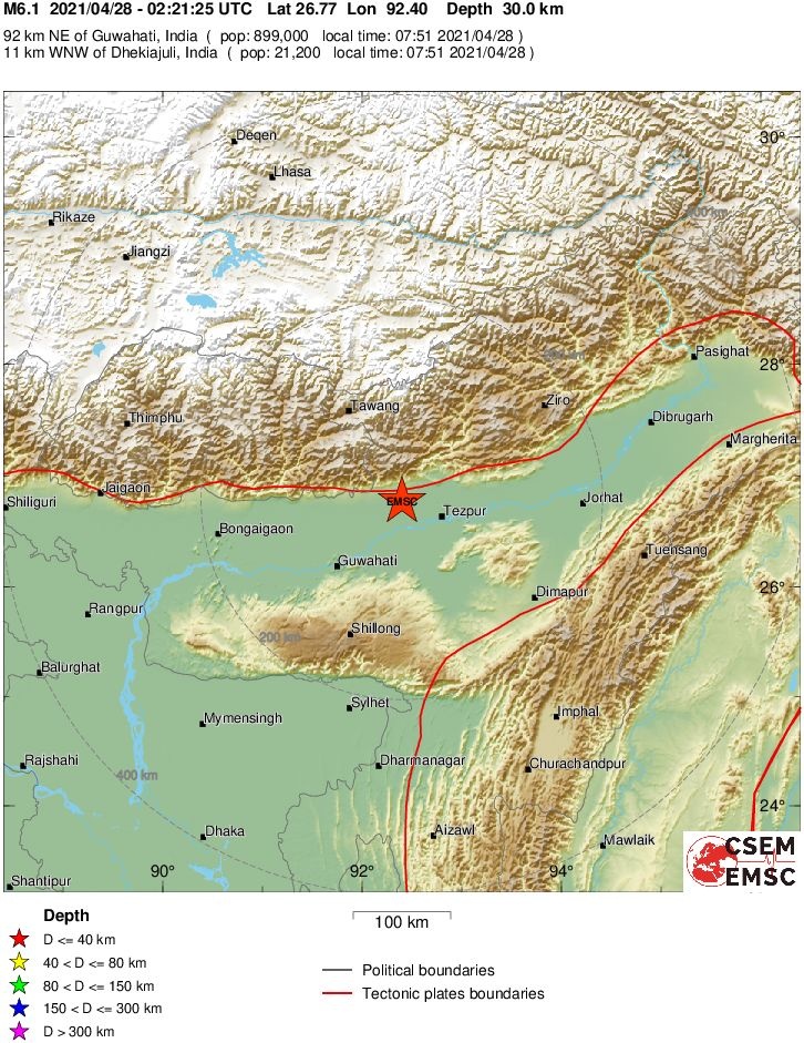 Κάτοικοι της Γκουάχατι, της πρωτεύουσας του Ασάμ, ανέφεραν πως ο σεισμός, που ακολουθήθηκε από αρκετούς δυνατούς μετασεισμούς, ταρακούνησε κτίρια και προκάλεσε ρωγμές σε τοίχους.