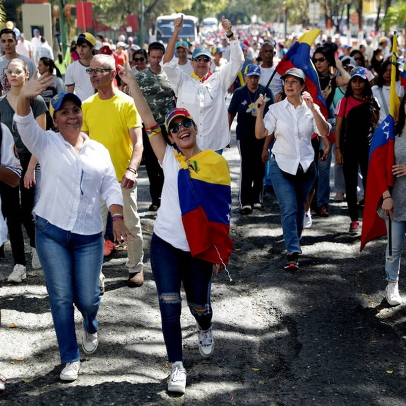 Ανταποκρινόμενοι στο κάλεσμα του Γκουαΐδό, οι υποστηρικτές της αντιπολίτευσης, κρατώντας σημαίες της Βενεζουέλας, συγκεντρώθηκαν σε πέντε σημεία στο ανατολικό τμήμα της πρωτεύουσας και ξεκίνησαν την πορεία τους προς την έδρα της αντιπροσωπείας της Ευρωπαϊκής Ένωσης, στη συνοικία Λας Μερσέδες.