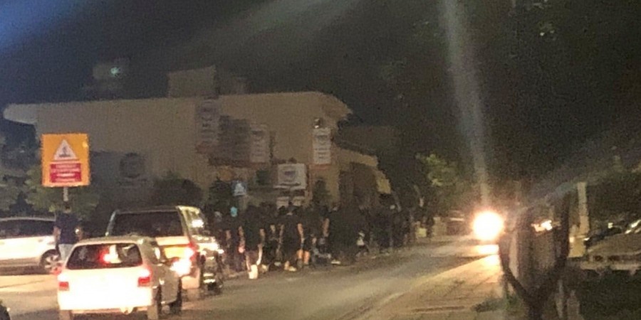 Πληροφορίες κάνουν λόγο ότι οι συγκεντρωμένοι κρατούσαν ρόπαλα και ελληνικές σημαίες, φορούσαν κουκούλες ενώ ακούστηκαν συνθήματα, «Η Κύπρος είναι Ελληνική».