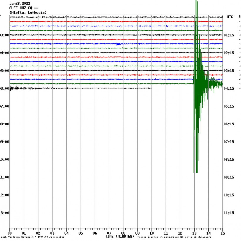 Δείτε στη gallery το σεισμό, όπως τον κατέγραψε ο σεισμογράφος του Κυπριακού Σεισμολογικού Δικτύου του Τμήματος Γεωλογικής Επισκόπησης, που είναι τοποθετημένος στην Αλεύκα.