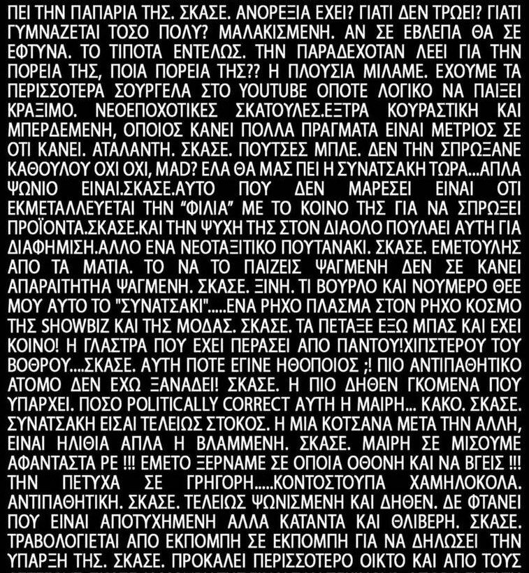 Σάλος με Συνατσάκη: «Σκάσε! Βλαμμένη, αποτυχημένη...» - Δείτε τι ανέβασε στο Instagram