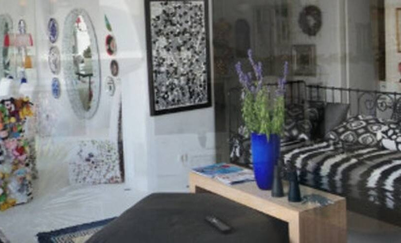 Το εσωτερικό του σπιτιού με μοναδικής αισθητικής έπιπλα, καθρέπτες στους τοίχους, καθώς και πανάκριβα υφάσματα συνδυασμένα με την αιγαιοπελαγίτικη αρχιτεκτονική.