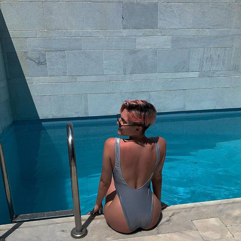 Η τραγουδίστρια ποζάρει με το μαγιό της