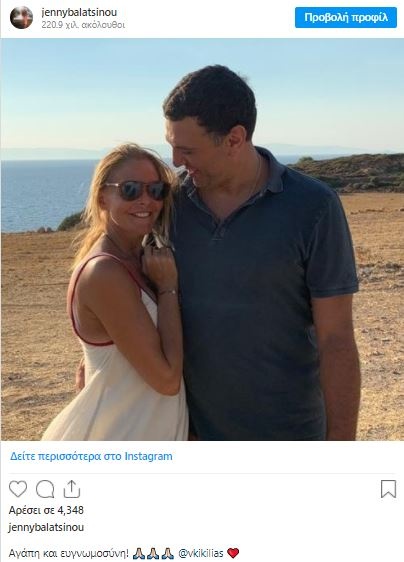 Όπως έγραψε ο πανευτυχής Βασίλης Κικίλιας «σε μία από τις πιο απαιτητικές περιόδους, με μάχες καθημερινές στη ζωή όλων μας, έρχεται ένα δώρο Θεού να φωτίσει τη ζωή μας με τη Τζένη. Η οικογένειά μας μεγαλώνει @JennyBalatsinou. Είμαστε ευτυχείς, γεμάτοι αγάπη και ευγνωμοσύνη».