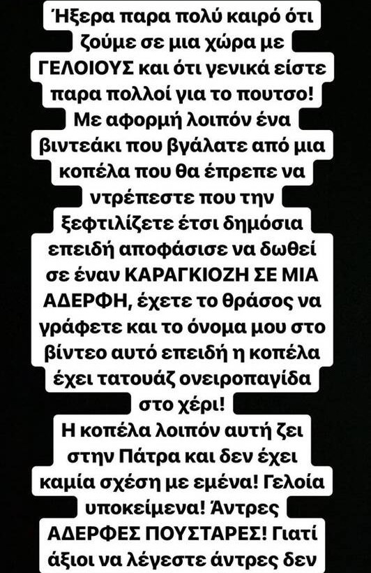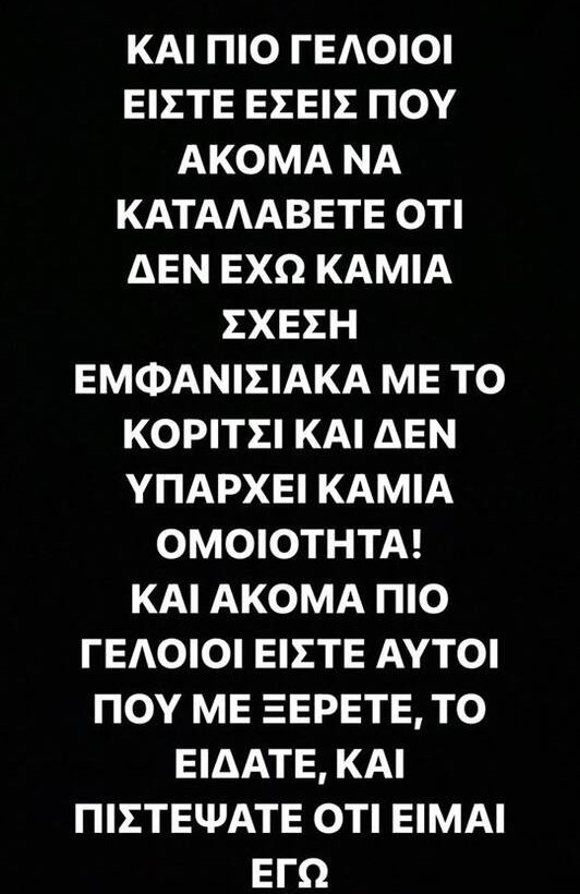 Με δυο story στο Instagram διέψευσε κατηγορηματικά πως είναι εκείνη που πρωταγωνιστεί στο video ενώ εξαπέλυσε επίθεση σε εκείνους που δημοσίευσαν το video.