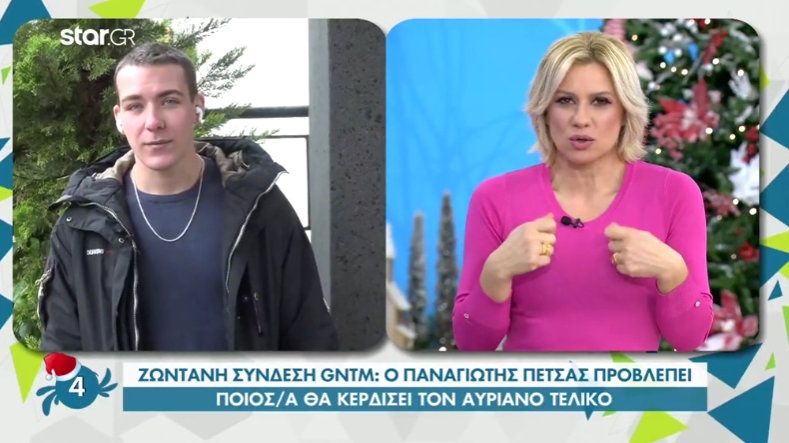 Η κάμερα του Star συνάντησε τον Παναγιώτη Πέτσα, πρώην παίκτη του GNTM3. Το νεαρό μοντέλο απάντησε στις ερωτήσεις του Κρατερού και της Κατερίνας αποκαλύπτοντας το πρόσωπο που θα ήθελε να δει στη θέση του νικητή.