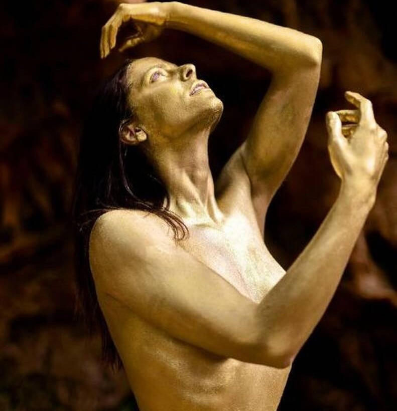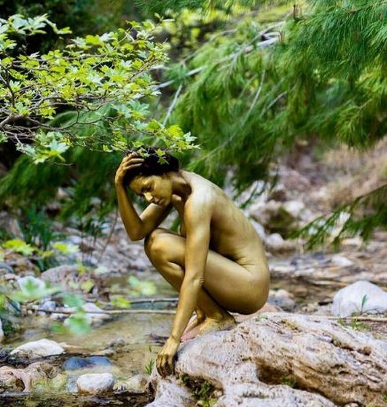 Με χρυσό body paint σε όλο της το σώμα, η Μυριέλλα Κουρεντή πέταξε τα ρούχα της και φωτογραφήθηκε σε καλλιτεχνικές πόζες.
